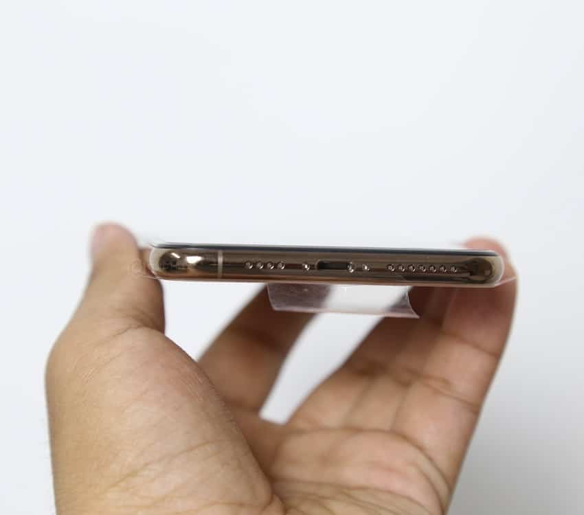 Được tạo thành từ khung thép và bao phủ bởi mặt kính cường lực, các kích thước đo được trên XS Max là 157.5 x 77.4 x 7.7 mm. Cân nặng của chiếc máy này không quá lớn, chỉ khoảng 208 g.